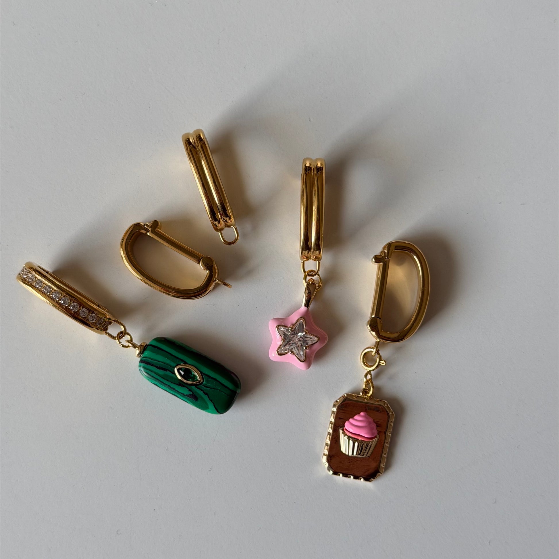 Curated pieces of gold-toned charm hoops designed to be worn as personal statements.